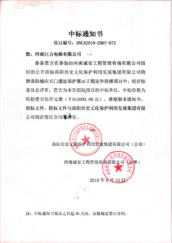 中標通知書